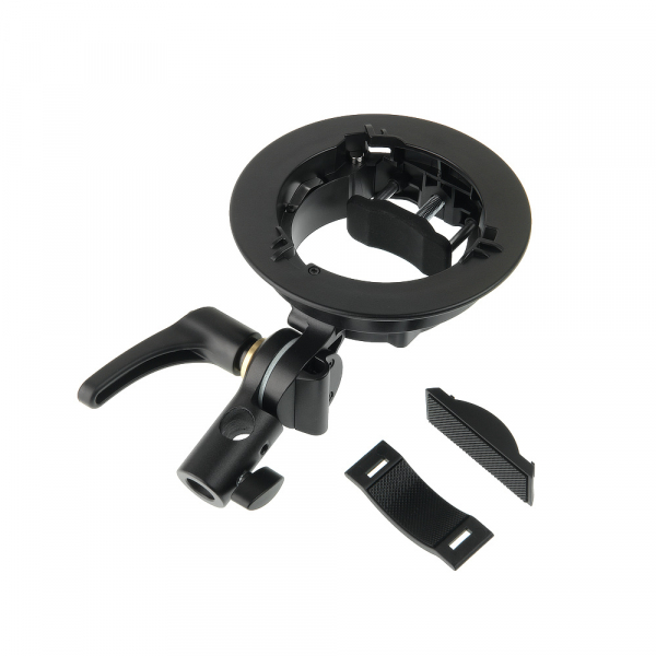 Адаптер Godox S2 (Bowens для накамерных вспышек) Адаптер Godox S2 предназначен для использования накамерной вспышки совместно со светоформирующей насадкой (с креплением Bowens). Адаптер предусматривает возможность установки фотозонта. Godox S2 позволит раскрыть максимальный потенциал накамерной вспышки при работе с сотфбоксами, портретными тарелками, рефлекторами, конусами, фотозонтами и т. д. Кронштейн наклоняется почти на 180° и имеет крепление 5/8" для монтажа на стойке.