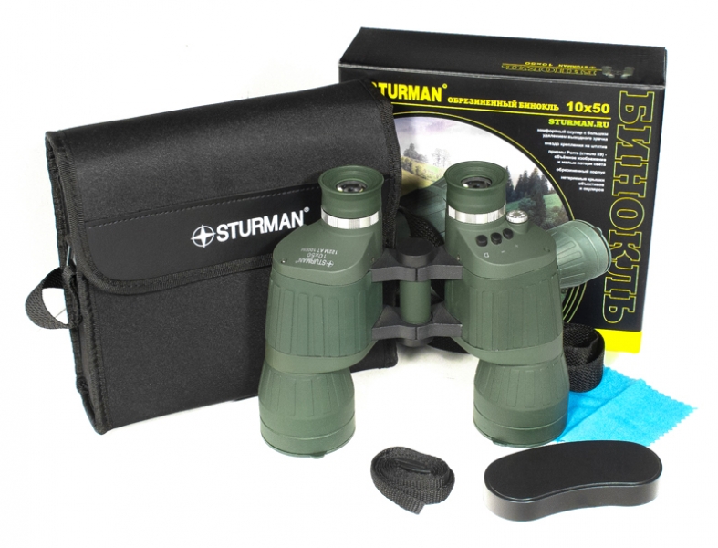 Конструктивные особенности бинокля Sturman 10x50 FF с дальномерной сеткойПриобретая бинокль Sturman 10x50 FF с дальномерной сеткой, Вы получаете возможность не только вести наблюдения, но и проводить необходимые измерения. Данная модель имеет встроенную в правый окуляр дальномерную сетку, позволяющую оценить расстояние до объектов известного размера. Корпус бинокля изготовлен из алюминиевых сплавов, отличающихся пластичностью и малым удельным весом. Тубусы объективов и крышки корпуса - пластиковые. Нескользящее резиновое покрытие – обеспечивает дополнительную защиту прибора от повреждений и случайных падений, также обеспечивает надёжный и удобный хват. Система призм Porro из оптического стекла К9 позволяет получить объёмную и насыщенную картинку, а для усиления яркости и контраста видимого изображения на поверхности всех линз наносится многослойное просветляющее покрытие. Бинокль не требует настройки, его оптическая схема расчитана на людей с нормальным зрением (1), на наблюдения предметов удалённых не менее чем на 20 метров. В бинокле Sturman 10x50 FF с сеткой предусмотрена регулировка межзрачкового расстояния в пределах от мм до мм. Бинокль Sturman 10x50 FF с дальномерной сеткой устанавливается на штатив с помощью адаптера (приобретается дополнительно), в комбинации со штативом рекомендуется использовать для длительных наблюдений из одной позиции. Комплектация бинокля Sturman 10x50 FF с дальномерной сеткойБинокль поставляется в комплекте с защитными крышками окуляров и объективов, оригинальным фирменным шейным ремешком и плотным чехлом для хранения и переноски. Технические характеристики бинокля Sturman 10x50 FF с дальномерной сеткой