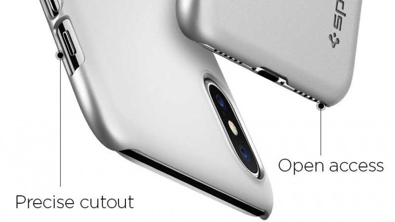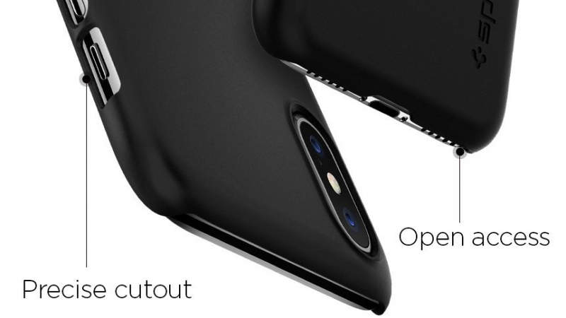 Чехол pigen Thin Fit для iPhone X Spigen Thin Fit представляет собой ультратонкий элегантный чехол-накладку для iPhone X. Он выполнен из прочного и износостойкого поликарбоната, имеет приятное на ощупь матовое покрытие Soft-touch. Накладка защитит ваш коммуникатор от загрязнения и пыли, а также убережет его в случае случайного падения с небольшой высоты. Аксессуар совместим с пластиной QNMP, служащей для установки телефона в магнитные держатели. Стильный эргономичный чехол iPhone X Spigen Thin Fit выполнен в форм-факторе накладки на заднюю часть. Он имеет все необходимые вырезы под разъемы, органы управления и камеру смартфона. Аксессуар обеспечивает плотное прилегание. Накладка защитит коммуникатор от потертостей и царапин, а также придаст ему строгости и изысканности.