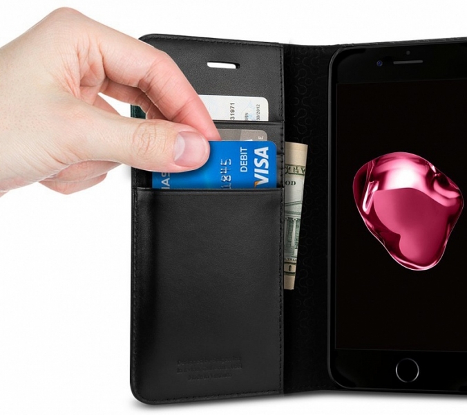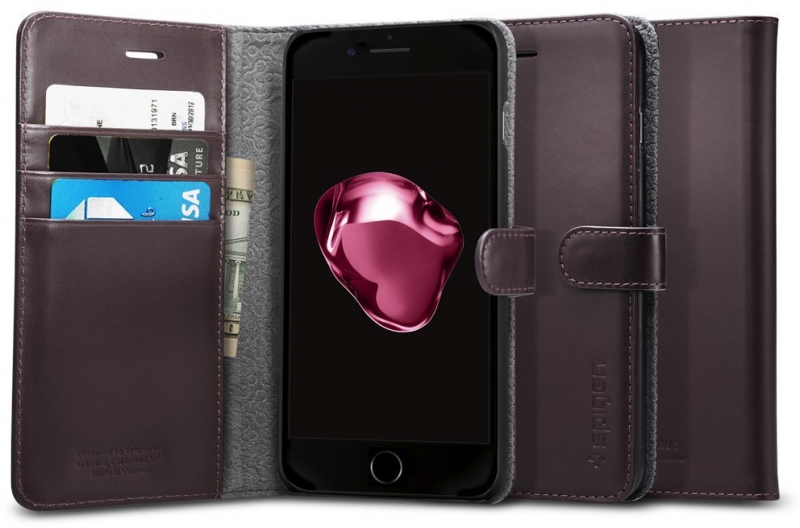 Чехол Spigen Valentinus для iPhone 7 Plus Spigen Valentinus представляет собой выполненный в виде портмоне чехол для iPhone 7 Plus. Он не только обеспечит высокий уровень защиты вашего мобильного устройства, но придаст ему роскошный внешний вид, подчеркнув ваш стиль. Также он расширит функциональность коммуникатора, позволит всегда иметь при себе пластиковые карты, наличность, визитки. Внутренняя часть чехла Spigen Valentinus отделана микрофиброй, при этом внутри он имеет прочный каркас из поликарбоната, что, в свою очередь, обеспечивает надежную защиту находящегося в нем iPhone 7 Plus. Аксессуар выполнен полностью вручную из натуральной кожи премиум-класса. Особенности