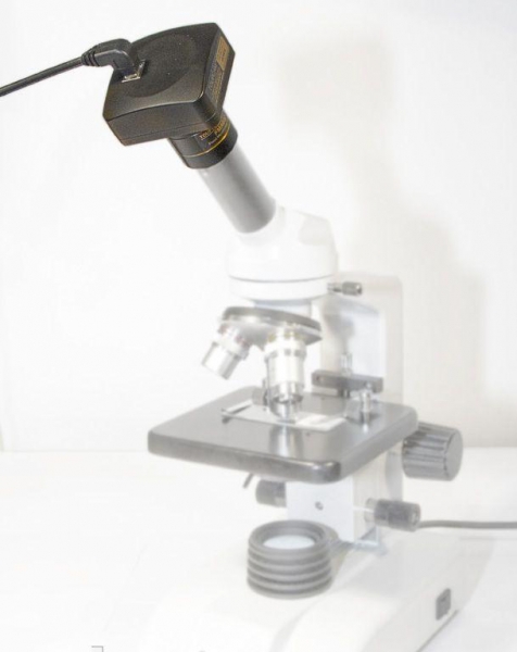 Крепление C-mount, имеющееся на камере, позволяет легко установить ее на любой современный микроскоп. Большой сенсор ICX452AQ(Color) обладает очень высокой чувствительностью и позволяет получать цветное изображение с разрешением 2592 x 1944 пикселей. Данные модели камер нашли свое применение в самых различных областях, а именно там, где высокая четкость увеличенного изображения играет важную роль. Это флуоресцентные методы исследований в микробиологи, а также микроскопы, использующие темнопольные методы наблюдений.