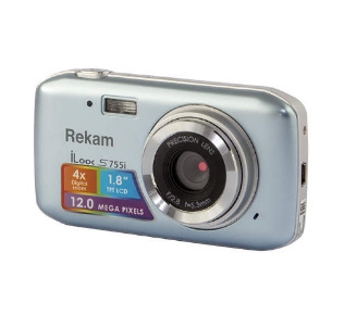Цифровая камера Rekam iLook S755i (серый металлик) Легкая, миниатюрная фотокамера с разрешением 12 мегапикселей и поддержкой карт памяти до 32 Гб. Автоматические настройки помогут выбрать оптимальный режим для разных условий съемки. Так же камера умеет снимать видеоролики со звуком в формате WAV. На ярком ЖК дисплее удобно просматривать отснятый материал и работать с меню камеры. Легкий корпус камеры имеет плавные, обтекаемые формы и легко умещается на ладони.