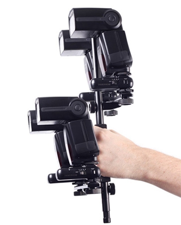 - Использование пластины основания от второго комплекта держателя Multi-Boom позволите установить 4 вспышки, либо две вспышки и два внешних аккумулятора.