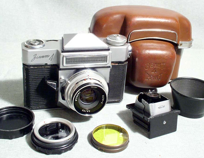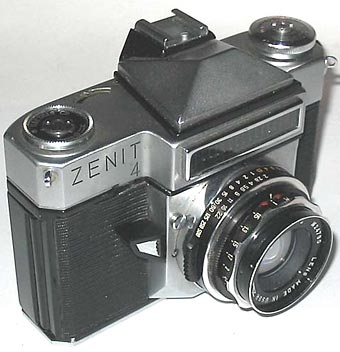 Фотоаппарат Зенит-4 представляет собой советскую однообъективную полуавтоматическую зеркальную камеру, выпускавшуюся на Красногорском механическом заводе (КМЗ) в период с 1964 по 1968 год. Этот фотоаппарат стал прототипом для последующих нескольких моделей камер данной марки. Данная модель в силу своих особенностей была достаточно дорогостоящей и выпущена в небольшом количестве. Нововведением для данной модели стали: большой размер фокусировочного экрана, почти равный размеру кадра, а также стеклянный прижимной столик, не деформировавший пленку. Камера оснащена полуавтоматическим механизмом установки экспозиции при помощи сопряжённого экспонометра, позволяющим оптимально подбирать значения выдержки и диафрагмы.