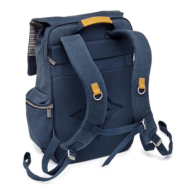 Новая Средиземноморская коллекция. Сочетание глубокого синего цвета со светло-серыми полосками и вставками из натуральной кожи добавляют нотку свежести и создают оригинальный стиль каждой сумке. Средний двухзонный рюкзак. Верхняя часть предназначена для различных аксессуаров и личных вещей. Нижняя защищенная часть (13х25х21 см) для зеркальной камеры с установленным объективом, дополнительного объектива и вспышки. В спинке рюкзака расположен отсек для 17` ноутбука. Два боковых кармана на молнии. Ремень для фиксации небольшого штатива. Мягкая спинка рюкзака и эргономичные лямки обеспечивают комфортное использование. Размеры внешние 45х32х19 см, внутренние 43х30х15 см.