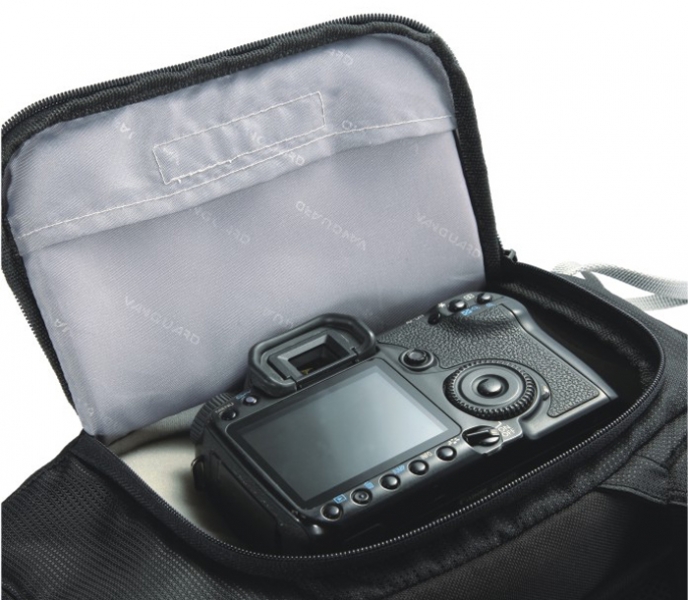 VANGUARD Kinray Lite 48 - рюкзак для фототехники. Доступ к оборудованию предоставляется как сбоку, так и через верхнее отделение, что позволяет переносить длинные телеобъективы и/или зрительные трубы и т.п. оборудование. Достаточно вместительное верхнее отделение для личных вещей и аксессуаров, боковой сетчатый карман для бутылки воды, держатель для монопода / штатива, разгрузочная система с поясным и нагрудным ремнями, мягкая рельефная спинка с вентиляцией и водонепроницаемый чехол в комплекте.