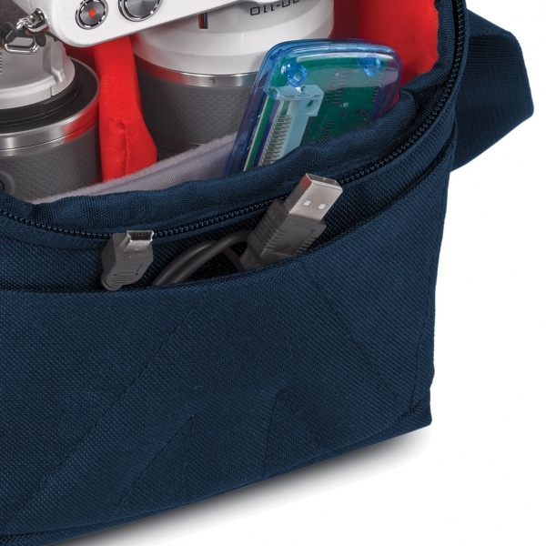 Небольшая плечевая сумка рассчитана на беззеркальные камеры со съемным объективом, дополнительный объектив. Есть небольшие карманы для личных вещей и небольших аксессуаров.