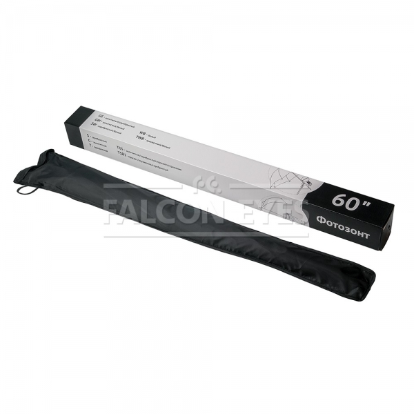 Фотозонт Falcon Eyes URK-60TWB Falcon Eyes URK-60TWB – комбинированный зонт 2 в 1: просветный/белый отражающий. Диаметр 122 см. Просветный зонт покрыт белой полупрозрачной тканью. Световой поток от вспышки попадает на ткань зонта, максимально рассеивается и, увеличивая площадь излучения, равномерно освещает объект съемки. Таким образом, резкий точечный свет, излучаемый при срабатывании фотовспышки, преобразуется в достаточно мягкий световой поток, излучаемый с большей площади. Белый отражающий зонт позволяет получить более контролируемый и направленный (по сравнению с просветным) равномерный свет и мягкие тени. Не искажает цветовую температуру источника освещения. Прочные эластичные спицы из стекловолокна и соединительные элементы из ударопрочного пластика для долговечного использования - спицы не ржавеют, сохраняют форму на протяжении всего срока эксплуатации, устойчивы к механическим воздействиям. Ткань из полиэстера обладает высокой износостойкостью.