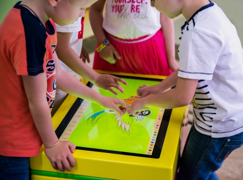 Интерактивный стол для дошкольников Уникум-3, имеет запатентованный подъемный механизм дисплея, что позволяет ребенку, практически любого роста и возраста, легко взаимодействовать с контентом и успешнее обучаться. Диагональ экрана составляет 107 см, что оптимально как для самостоятельных занятий, так и для мелкогрупповых. Встроенный компьютер с предустановленной Windows, Android и набором развивающих игр, позволяет мгновенно приступить к работе. Имеется также возможность подключения USB флешки, проектора или интерактивной доски.