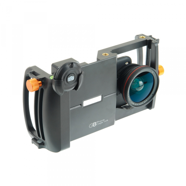 Клетка GreenBean Phone Cage WA для смартфона GreenBean Phone Cage WA – клетка для видеосъемки с помощью смартфона/камерафона с использованием широкоугольного объектива и макролинзы. Прочная эргономичная конструкция позволяет вести съемку с мобильного устройства и получать качественное изображение как при использовании профессионального оборудования. Удобный двуручный хват и надежная фиксация смартфона в подпружиненном держателе с резиновыми накладками оптимизируют съемочный процесс и помогают в итоге получить более четкое и плавное изображение. Кнопка Bluetooth (под правую руку) упрощает управление съемкой, исключает возможные рывки при запуске и окончании записи. Пузырьковый уровень как на профессиональных видеоштативах позволяет даже при экшн-съемке следить за положением камеры и не заваливать горизонт. Два регулировочных винта с крупными ребристыми головками помогают точно совместить камеру с прикрепленным к клетке объективом. Одним регулируется положение смартфона по горизонтали, другим – смещение адаптера с закрепленным на нем объективом по вертикали. Установить осветитель, микрофон и другие дополнительные устройства из ассортимента GreenBean можно в отверстия 1/4” с латунными втулками на верхней панели клетки. Для крепления подойдут головы, кронштейны и переходники. Закрепить клетку на штатив, мини-штатив, слайдер или стедикам позволяет посадочное гнездо с латунной втулкой под винт 1/4”. Это обеспечит стабильность изображения и поможет использовать преимущества работы с различными объективами, например с входящими в комплект широкоугольным объективом 0,5х и макролинзой 10х. С Phone Cage WA качественное видео сможет снять и динамичный участник рейва, и терпеливый мирмикипер. Петли на верхних углах клетки служат для крепления нашейного ремня (в комплект не входит), который вовремя подстрахует и даст отдых рукам оператора.