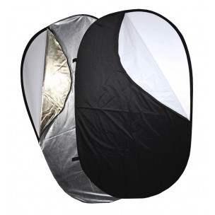 Комплект прямоугольных отражателей серия RR 5 в 1. В развернутом состоянии — 92 x 122 см, в свернутом — 43. Цвет отражающих поверхностей: белый, черный, золотой, серебряный, белый просветный. |