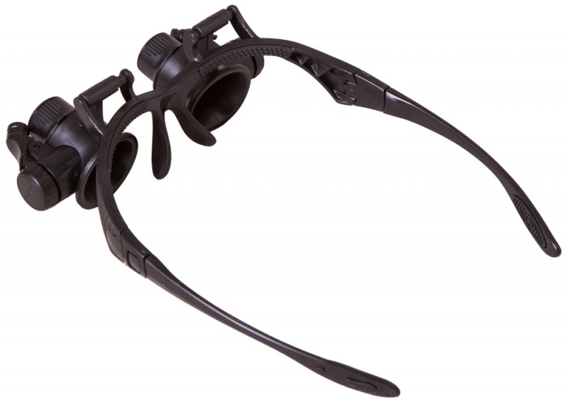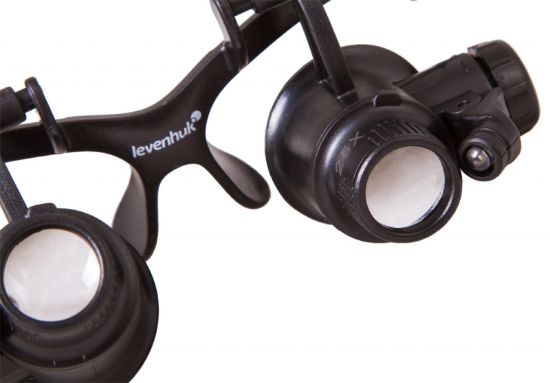 Лупа-очки Levenhuk Zeno Vizor G4 Лупа-очки Levenhuk Zeno Vizor G4 – мощный увеличительный прибор для длительной работы с мелкими предметами. Эта лупа дает увеличение в диапазоне от 10 до 25 крат и имеет встроенную светодиодную подсветку. Вы сможете работать не только днем, но и ночью, и при слабом внешнем освещении. Лупа будет незаменима при выполнении ремонтных работ, изучении часовых механизмов и ювелирных изделий. Очковая оправа позволит освободить руки для выполнения любых операций с предметами. Сменные линзы позволят подобрать оптимальную кратность для решения задач любой сложности. Линзы парные, сделаны из оптического пластика. Во время наблюдений любую линзу можно отвернуть наверх, не снимая ее полностью с оправы, что позволяет изучать рабочую область без увеличения. На каждой линзе размещен яркий светодиод. Световой луч подсветки можно направлять смещением основания подсветки.