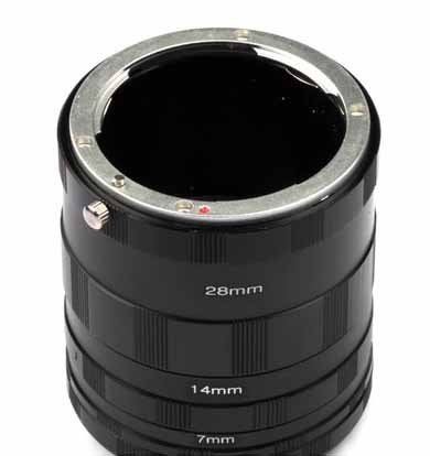 представляют собой цилиндр, который ставится между фотоаппаратом и объективом. Объектив удаляется от сенсора, что позволяет ему сфокусироваться ближе. Удлинительные кольца выпускаются для многих байонетов и резьбовых стандартов крепления объективов. Тем самым вы можете получить большое количество новых предметов съёмки на имеющемся оборудовании. Они не вносят дополнительных оптических элементов между предметом и сенсором камеры, таким образом минимизируя потенциальные потери качества изображения. С помощью макроколец вы можете создавать фантастические макро-фотографии, не покупая дорогостоящие макрообъективы. Набор состоит из макроколец разной длины, которые по отдельности или в сочетании позволяют делать фотографии на близком расстоянии. Чем больше колец будет добавлено, тем ближе будет фокус и тем выше увеличение.