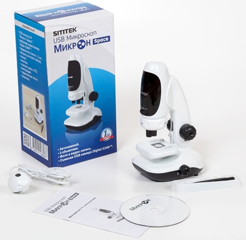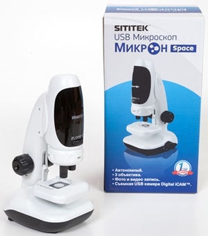 USB-микроскоп SITITEK "Микрон Space" оборудован и обычным оптическим окуляром, и цифровой камерой Digital iCAMтмCMOS-типа. Камера, соединенная с компьютером посредством USB кабеля, двигаясь по специальным салазкам, устанавливается над окуляром. Это позволяет передавать увеличенное изображение на экран компьютера или ноутбука в режиме реального времени, так как скорость передачи данных по порту достигает 480 Мбит/сек. Поэтому при желании и необходимости можно отказаться от традиционного метода работы с микроскопом (через окуляр) и просматривать изображение микроорганизмов на большом экране монитора, снимать фото и видео.