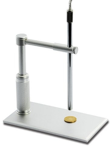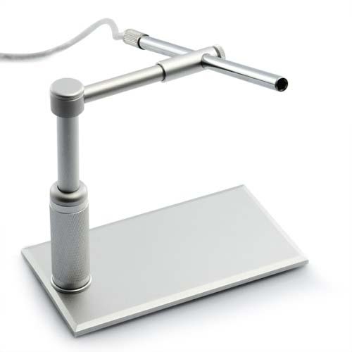 Микроскоп устанавливается в устойчивый металлический кронштейн. При большом увеличении это — незаменимая вещь, так как малейшая дрожь рук усиливается многократно, и изображение на экране монитора смазывается. Кронштейн имеет простую схему крепления, которая позволяет быстро подготавливать микроскоп к работе, а высокая надежность крепления позволяет прочно зафиксировать прибор в выбранном положении.