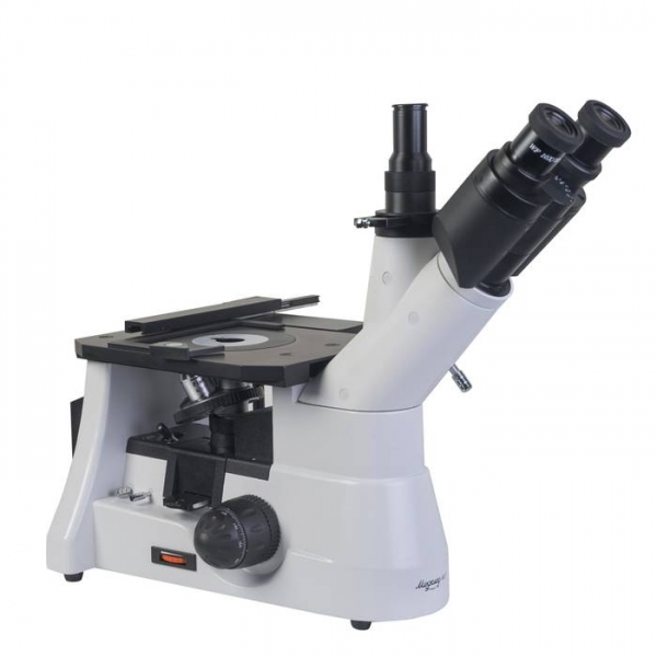 Микроскоп применяется для контроля качества металлов и сплавов и исследования их структуры. Инвертированное строение позволяет исследовать габаритные объекты. Фокусировка осуществляется за счет перемещения по вертикали револьверного устройства, а не предметного столика, что снимает с исследуемых объектов ограничение по массе.
