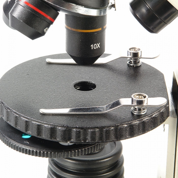 • Клеммы с пружинным механизмом позволяют удобно расположить препарат на предметном столике.