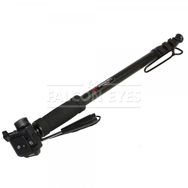 Монопод Falcon Eyes MP-3 предназначен для удобной установки фотоаппарата и стабилизации изображения. Монопод оборудован несменной 3D головкой с быстросъемной площадкой и пузырьковым уровнем. Четыре секции монопода обеспечивают широкий диапазон регулировки рабочей высоты. Максимальная высота в рабочем состоянии 180 см. В сложенном виде — 63 см. Большой диаметр секций (диаметр верхней секции 27 мм) и надежные цанговые зажимы успешно гасят передающиеся по корпусу вибрации и сохраняют прочность конструкции. Металлические зажимы с фторпластовыми прокладками обеспечивают долговечность работы и прочную фиксацию секций. Монопод изготовлен из алюминиево-магниевогосплава и весит 0,56 кг. Головка изготовлена из ударопрочного пластика.