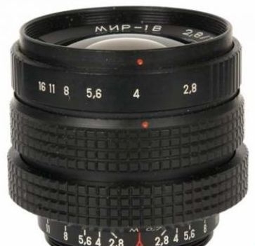 Объектив Мир-1В для М42 - представляет собой сменный объектив для отечественных однообъективных зеркальных камер марки «Зенит» и других с совместимым креплением. Крепление к камере - резьба М42×1/45,5. Объективы Мир-1 обладают следующей отличительной особенностью конструкции оправы: выступающий ободок вокруг задней линзы, верхняя половина окружности которого удалена, чтобы не мешать подъёму зеркала. Этот ободок предназначен для того, чтобы объектив можно было ставить на поверхность стола. Задняя линза при этом не касается поверхности.