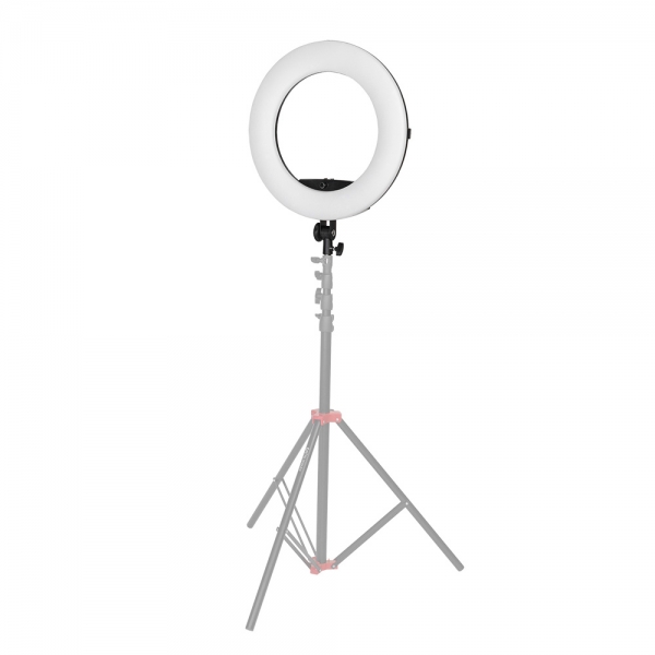 Осветитель кольцевой Falcon Eyes BeautyLight 480 LED Широкая сфера применения Кольцевая лампа Falcon Eyes BeautyLight 480 LED станет удачным приобретением не только для фотографа, но и для визажиста, блогера, косметолога, тату-мастера, магазина косметики и т.д., для тех, кому необходим удобный источник мягкого и равномерного света. Диаметр осветителя 45 см Светодиодный осветитель BeautyLight 480 LED представляет собой легкий и компактный осветитель с источником света в виде кольцевой панели диаметром 45 сантиметров с 480 светодиодами мощностью 96 Вт. Благодаря такой форме свет распределяется равномерно, освещая скрытые тенью участки. Регулировка цветовой температуры BeautyLight 480 LED позволяет регулировать цветовую температуру лампы от 3200К до 5500K без использования фильтров. Встроенное бесступенчатое управление цветовой температурой поможет совмещать BeautyLight 480 LED с другими светильниками или отвечать требованиям естественного освещения окружающей среды. Удобная эргономика Все регулировки и настройки производятся всего одним валкодером, который представляет собой регулятор-кнопку, с помощью которого возможна регулировка яркости, цветовой температуры, выбор канала и группы. Валкодер расположен на задней панели управления рядом с ЖК-экраном и дублируется на передней стороне осветителя для удобного и быстрого доступа к настройкам без выхода из кадра. Пульт дистанционного управления В комплект поставки входит беспроводной пульт дистанционного управления осветителем/группой осветителей на расстоянии до 50 м: удаленного включения/выключения, регулировки яркости и цветовой температуры. Благодаря возможности дистанционного управления параметрами каждого осветителя в студии отсутствует необходимость обходить каждый из них при настройке, работать с приборами становится удобнее, а у фотографа появляется больше возможностей для реализации творческих идей. Flicker-free Технология Flicker-free позволяет снимать видео без мерцания со скоростью записи 60 кадров в секунду. Эффект мерцания отсутствует на всех значениях яркости прибора. Точная регулировка яркости Прибор позволяет точно выбрать требуемое значение яркости и быстро вернуться к заранее подобранным настройкам. Значение яркости отображается на LCD экране, индикация 01-100 с шагом 1. Компактный и портативный Небольшие размеры осветителя и низкий уровень потребляемой светодиодами мощности делают этот осветитель, создающий тем не менее достаточно мощный световой поток, привлекательным для использования как в помещении, так и на выезде с использованием в качестве источника питания двух аккумуляторов Sony NP-F550/F750/F970. Установка дополнительных аксессуаров Благодаря двум монтажным креплениям типа "башмак", расположенным внутри кольца и снаружи, на осветителе можно установить дополнительное оборудование – смартфон для съемки фото- или видео, дополнительную подсветку или зеркало (соответствующие кронштейны приобретаются отдельно).