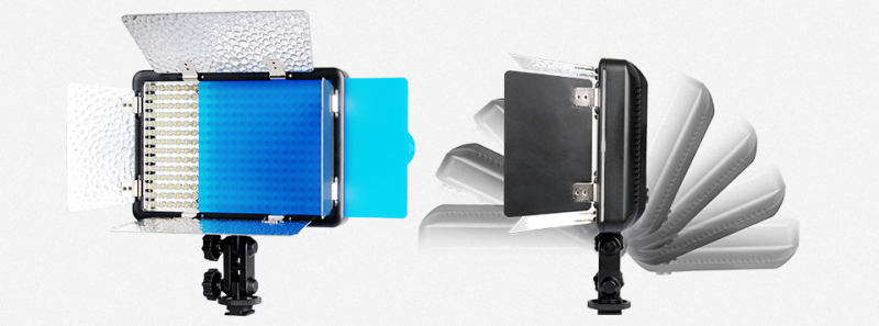 308 высококачественных светодиодов обеспечивают высокую яркость. Беспроводная система синхронизации в группы (6 групп и 16 каналов), дистанционная регулировка яркости и цветовой температуры. Три модели с большим ЖК дисплеем. Питание от литиевого аккумулятора или сетевого адаптера. Шторки в комплекте помогают создать больше световых эффектов