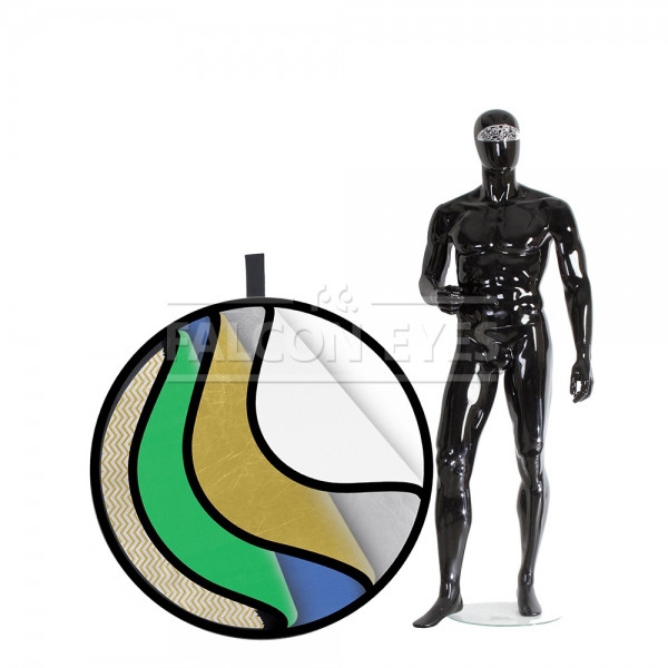 Круглый отражатель 7 в 1: золотистый/серебристый/белый отражающий/ белый просвечивающий/серебристые и золотистые полоски/зеленый/синий. Рабочий диаметр 106 см. Используется в предметной и портретной съемке, а также для подсветки участков кадра. Конструкция состоит из пружинного стального обруча с натянутой на него полупрозрачной рассеивающей тканью и чехла на молнии со светоформирующими поверхностями. Золотистая поверхность придает отраженному свету золотистые тона, добавляет теплого света в сцену. Серебристая поверхность используется для получения жесткого света, что позволяет получать контрастное изображение с четкими тенями. Высокий коэффициент отражения делает эту поверхность одной из часто используемых, найдет применение даже в пасмурную погоду. Белая отражающая поверхность позволяет получить равномерный и мягкий световой поток для подсветки теней и выравнивания светотеневого рисунка, используется как заполняющий источник. Не искажает цветовую температуру источника освещения. Просвечивающая ткань рассеивает проходящий сквозь нее световой поток от вспышки и равномерно освещает объект съемки увеличенной площадью излучения. Таким образом, резкий точечный свет, излучаемый при срабатывании фотовспышки, преобразуется в достаточно мягкий световой поток, излучаемый с большей площади. Золотисто-серебристые полоски модифицируют световой поток от источника в эффективный умеренно теплый и мягкий световой поток, перенаправляемый на объект съемки. Зеленый и синий применяются для съемки по технологии хромакей. Стальной упругий каркас прошит по периметру капроновым карманом, диаметр отражателя в сложенном виде – 40 см.
