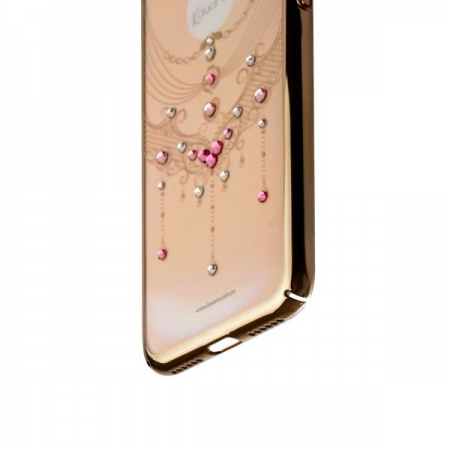 Пластиковый чехол-накладка от KAVARO - отличное решения для защиты корпуса iPhone 7. Аксессуар выполнен из хромированного пластика, и красивые отражения на нем создают впечатление, что KAVARO 79G сделан с использованием драгоценных металлов. Прозрачная задняя часть этого чехла декорирована оригинальным орнаментом и инкрустирована переливающимися стразами Swarovski. Аксессуар отлично дополняет дизайн смартфона, выглядит стильно и богато, защищая ваш iPhone 7.