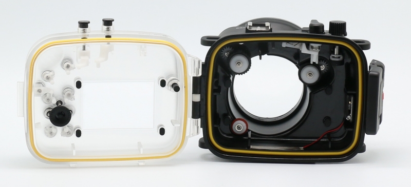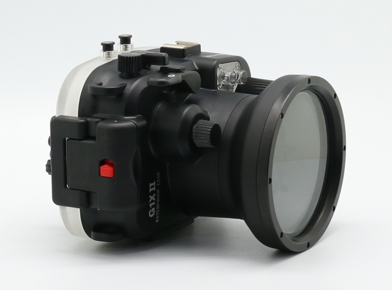 Подводный бокс (аквабокс) Meikon для фотоаппарата Canon Powershot G1x Mark II Подводный бокс (аквабокс) для цифрового фотоаппарата Canon Powershot G1x. Mark II - глубина погружения 60 метров, при изготовлении использованы материалы - прочный поликарбонат, закаленное стекло, нержавеющая сталь. К боксу предусмотрено подключение внешних подводных вспышек через оптоволоконный кабель. Бокс прошел сертификацию IPX8 & CES. Все боксы прошли проверку в барокамерах.