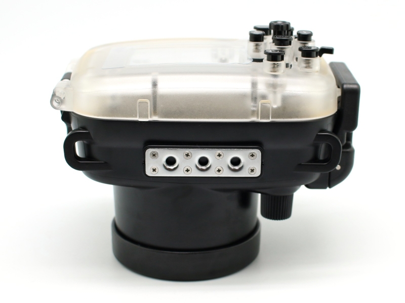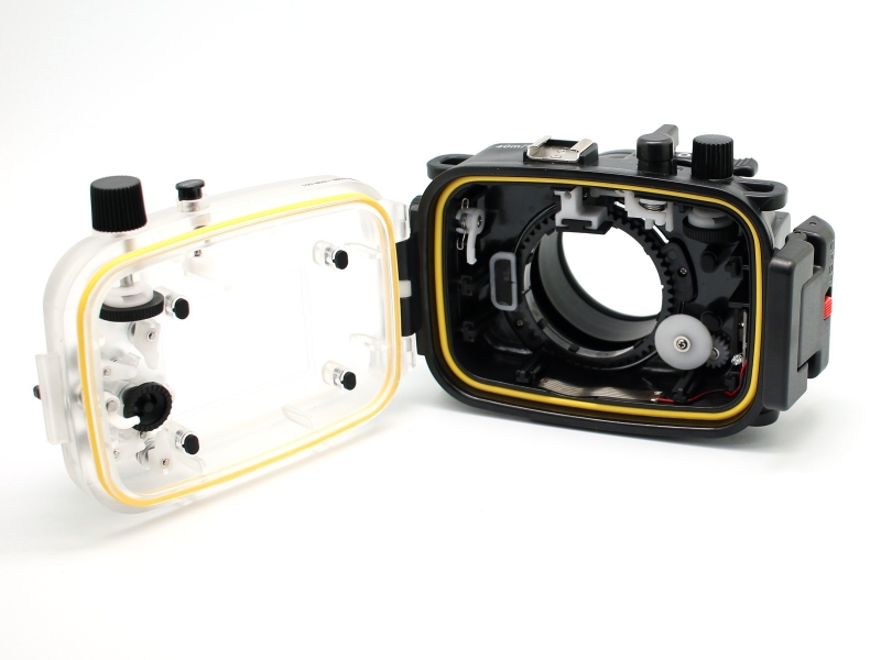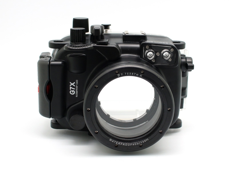 Подводный бокс (аквабокс) Meikon для фотоаппарата Canon Powershot G7x Подводный бокс (аквабокс) для цифрового фотоаппарата Canon Powershot G7 x. - глубина погружения 40 метров, при изготовлении использованы материалы - прочный поликарбонат, закаленное стекло, нержавеющая сталь. К боксу предусмотрено подключение внешних подводных вспышек через оптоволоконный кабель, а также подсоединение насадок и фильтров. Бокс прошел сертификацию IPX8 & CES. Все боксы прошли проверку в барокамерах.
