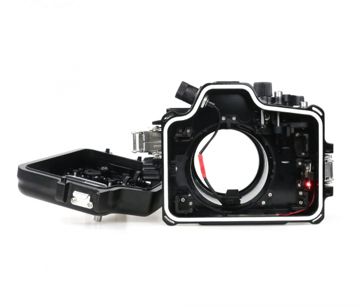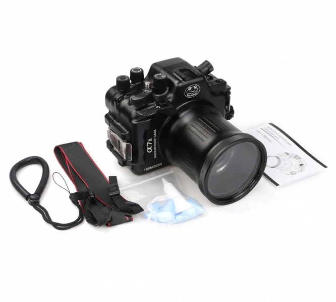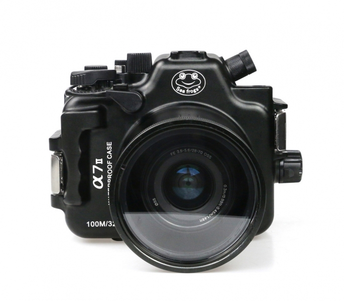 Подводный бокс (аквабокс) Sea Frogs для фотоаппарата Sony Alpha A7II (16-35 / 24-70 / 28-70 мм) алюминий Подводный бокс выполнен из цельного блока твердого алюминиевого сплава. Фрезеруется на высокоточных станках и анодируется с учетом использование в морской воде. Этот ультра-прочный корпус имеет глубину погружения 100 метров в соленной воде. Новые сверхпрочные замки задней крышки бокса. Бокс имеет возможность сменных портов под разные объективы. Байонет Type2A В комплекте поставляется портом для объективов SEL 16-35mm, SEL 24-70mm. Он имеет датчик протекания со звуковым и световым сигналом, электронный порт для подводной вспышки. Продуманная эргономика позволит Вам с удобством использовать все функции цифрового фотоаппарата.