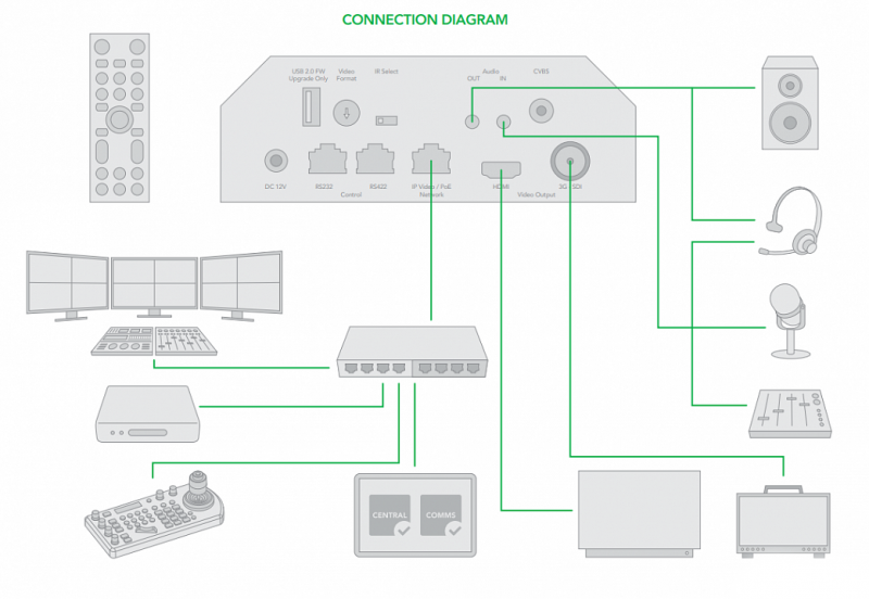 Роботизированная камера BirdDog Eyes P200 NDI Поддерживает разрешение до 1080p60, 30x оптическое увеличение, выходы SDI, HDMI, CVBS и поток NDI® 100 мегабит в секунду. Разъем 3.5мм позволяет пользоваться интерком-системой BirdDog Comms, первым в мире интерком-решением для NDI®. Компактная и легкая камера P100 применяется для записи и онлайн-трансляциях в церквях, учебных классах, радиостудиях, корпоративном секторе, телемостах и на телевидении. P200 - полностью управляемая PTZ камера с интерфейсами RS422, RS485, и RS232 а также по протоколу NDI.