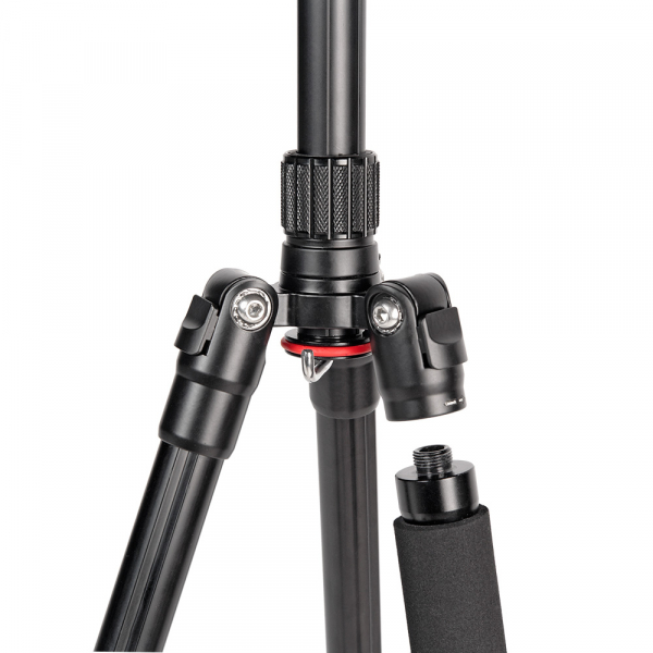 Штатив Falcon Eyes Red Line Pro-614 BH17 Cерия RED LINE – это заслужившая большую популярность конструкция со складывающимися назад ногами, одна из которых снимается и трансформируется в монопод. Компактные размеры и легкий вес RED LINE Pro-614 BH17 – профессиональный штатив-монопод со сменной шаровой головкой, рассчитан для использования с камерами весом до 6 кг. Длина в сложенном виде - 430 мм, вес штатива с головой - 1,22 кг. Подходит для большинства видов съемок – макросъемка, портретная съемка, трэвел-фотография и других. Надежная и быстрая фиксация камеры Съёмная шаровая голова обладает высокой прочностью и прецизионным исполнением. Установив усилие зажима на близком к максимальному уровню, вращение шара происходит плавно и без «рывков». Винтовое крепление головки имеет резьбу 3/8“. Фиксатор горизонтального панорамирования работает независимо и управляет поворотом головки относительно основания с нанесенной шкалой. Это позволяет вернуться к определенному ранее положению, подобранному для конкретной ситуации. На шаровой головке предусмотрен пузырьковый уровень. Головка оснащена быстросъёмной площадкой с противоскользящими накладками. Винт для крепления оборудования с резьбой 1/4“. Размер площадки 39 х 50 мм. Для предотвращения выпадения площадки, с обратной стороны предусмотрены два стопорных винта. Реверсивная центральная колонна Реверсивная центральная колонна позволит проводить съемку с максимально низкой точки. Для точной настройки высоты под рост, конструкцией предусмотрена регулировка центральной колонны с прочной фиксацией цанговым зажимом, снизу колонны находится подпружиненный крюк для груза-противовеса. 2 в 1: штатив легко преобразуется в монопод Одна из ног (с противоскользящей пенкой) штатива съемная, соединив её с центральной колонной и головкой можно получить монопод высотой от 77 до 151 см, который незаменим в репортажных съемках. Быстрая подготовка к работе на любой поверхности Ноги штатива имеют возможность регулировки угла наклона. Для этой цели предусмотрены специальные защелки, которые ограничивают угол наклона каждой ноги в двух положениях. Фиксация ног штатива под разным углом дает возможность использовать в качестве опоры ступени, камни и другие сложные поверхности, а также проводить съемку с нижней точки. Реверсивно складывающиеся ноги уменьшают габариты конструкции в сложенном виде. Клипсовые зажимы надежно соединяют между собой 4 секции ног, резиновые наконечники на ногах придают штативу дополнительную устойчивость и противодействуют появлению царапин на поверхности пола. Готов к работе в любую погоду Изготовлен из алюминия и ABS-пластика, эти материалы позволяют использовать штатив при неблагоприятных погодных условиях. В комплекте чехол для транспортировки и хранения.