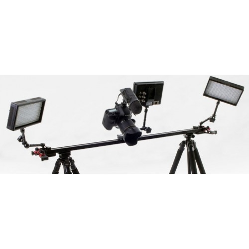 Далеко не все случаи требуют передвижения камеры именно слева направо, однако же, такое положение слайдера используется наиболее часто. Такое положение позволяет приближать и отдалять камеру от предмета съемки. Позволяет добиться высочайшего качества результата и воплотить все творческие идеи в реальность. Отверстия для крепежных винтов 1/4" и 3/8" позволяет установить дополнительное оборудование для съемки на нижней части слайдера. Штатив очень удобен для установки слайдера в горизонтальном положении.