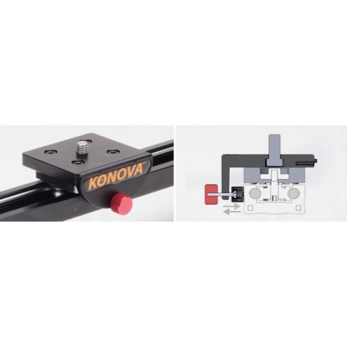 Штатив или головку можно прикрепить к нижней части рельс слайдера. Слайдер Konova совместим с головкой или адаптером 3/8"- 5/8" (поставляется отдельно). Возможна установка камеры под любым углом. Высота ножек регулируется, что позволяет установить слайдер под наклоном. При необходимости рельсы с легкостью снимаются с ножек.