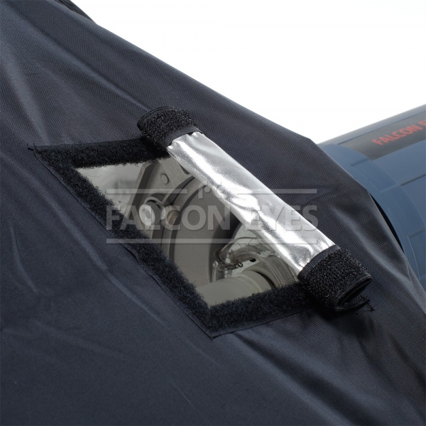 Софтбокс Falcon Eyes Софтбоксы с соотношением сторон более чем 1:3 называют стрипбоксами, их используют для ростовой съемки, создания градиентной подсветки на фоне, в предметной съемке для получения яркого длинного блика, и там, где нужно получить направленный узкий свет, например для подсветки волос и плеч сверху. Изготовлен из жаропрочного материала, на стенках расположены вентиляционные карманы для отвода тепла. Рабочая поверхность софтбокса выполнена из качественной жаропрочной синтетической ткани с высокоотражающей металлизированной серебристой (нефактурной) поверхностью, рассчитана на длительную эксплуатацию при интенсивной работе в студии, не отслаивается и не меняет отражающие свойства в течение длительного времени. Для циркуляции воздуха внутри изделия и отвода избыточного тепла имеются два вентиляционных окна.