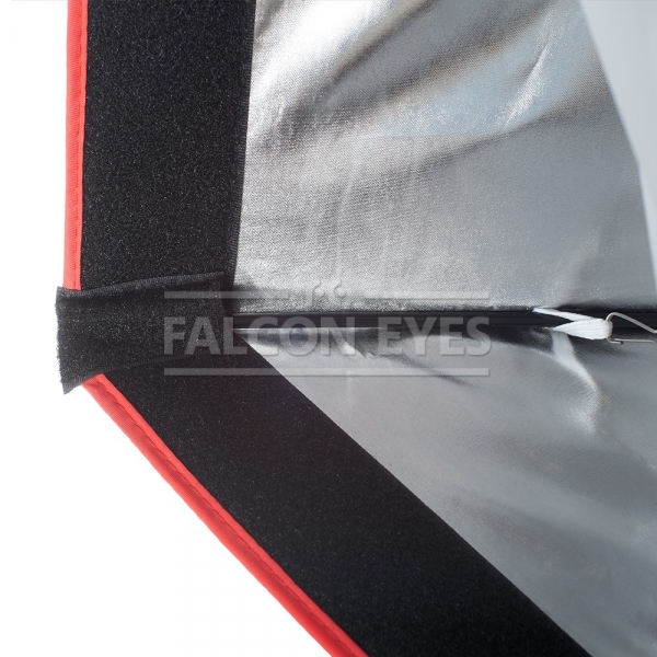 • Закрытая конструкция позволяет избежать нежелательных бликов и потерь светового потока. Отражатель, с серебристой тканью внутри, обеспечивает равномерную засветку рассеивателя, который в свою очередь, благодаря большой поверхности, смягчает формируемые тени. Дополнительный внутренний диффузор улучшает равномерность светового потока. Наконечники на упругих металлических спицах не повреждают тканевые спицедержатели софтбокса и облегчают сборку конструкции.