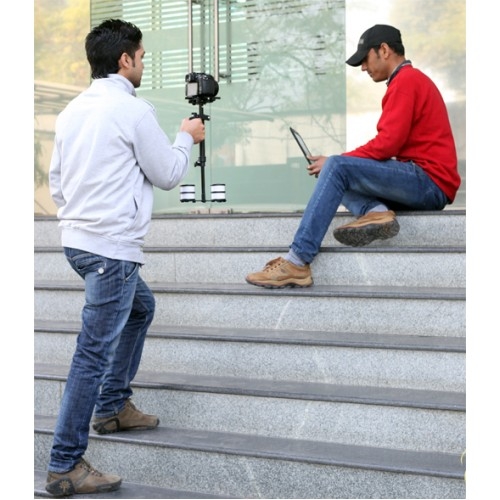 Стедикам с подшипниками позволяет плавно вращать и наклонять камеру. Стедикам Flycam Nano Plus позволяет вести динамичную съемку и совершенно не беспокоиться о неустойчивости камеры и балансировке камеры. Устройство подходит для работы с камерами массой до 1 кг. Быстросъемная площадка стедикама отличается своей усовершенствованной конструкцией. Высота стедикама регулируется при помощи телескопической стойки. Подшипник по трем осям, что дает оператору абсолютную свободу в регулировке положения камеры. Сборка и установка устройства очень просты, занимают считанные минуты и не требуют использования дополнительных инструментов.