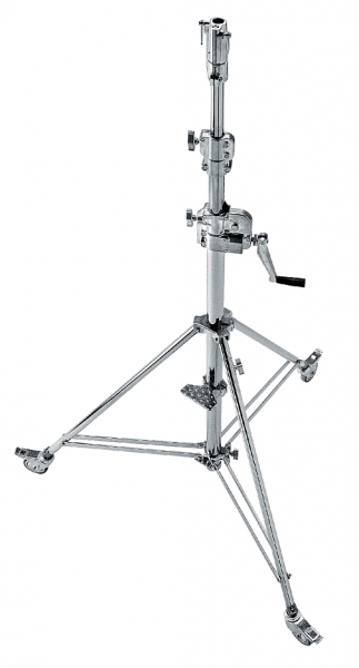 Стойка 3-х секционная, стальная, с редуктором. Колеса с тормозным механизмом в комплекте. Используется в фото-, теле- и кинопроизводстве для установки осветительного оборудования.