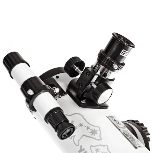 Телескоп Veber Умка 76/300 это классический рефлектор Ньютона на азимутальной монтировке «турельного» типа (Монтировка Добсона). При таких небольших размерах (длина трубы 300 мм, 76 мм диаметр) может показаться, что это детский телескоп, но посмотрите в него- и ваше мнение изменится кардинально. Тем более, что с увеличением 15 крат (окуляр Н20 мм) вы сможете сфокусироваться и днем на любые объекты. Этот телескоп можно использовать и как настольную зрительную трубу. В комплект к телескопу входят два окуляра (8 мм и 20мм) и 2х кратная линза Барлоу, благодаря этому можно менять кратность увеличения простой заменой окуляров. Качественное изготовление монтировки, всех фокусировочных узлов и оптических элементов, позволяет без труда и в деталях рассмотреть многие звезды и объекты солнечной системы. Ну а для наблюдений Луны в комплект к телескопу входит специальный лунный фильтр. Он позволит уменьшить нежелательную яркость отраженного света от нашего естественного спутника Земли. С таким фильтром четкость изображения останется неизменной, и естественный цвет Луны останется прежним, кроме того этот фильтр подойдет и для наблюдений за «Двойными» звездами. Телескоп Veber Умка далеко не игрушка, и не простое украшение детской комнаты-это прежде всего настоящий телескоп. Его корпус выполнен из качественных материалов, а взглянув на его дизайн-в голове возникают воспоминания о детстве, о мультфильме, где отважный медвежонок познакомился с мальчиком и они стали дружить…Северное сияние, Арктика небесная мгла и величавые созвездия большой и малой медведицы. Звезды как далекие маяки освещающие путь будущим космическим путешественникам… Вселенная станет для вас еще ближе, всего лишь взгляните на нее через телескоп. И тогда она, возможно, приоткроет свои тайны и вам.