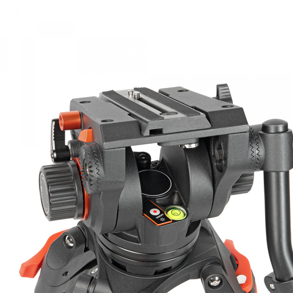 Видеоштатив GreenBean HDV Elite 755 Видеоштатив GreenBean HDV Elite 755 предназначен для стабилизации изображения при видеосъёмке видеокамерами или зеркальными фотоаппаратами весом до 4 кг. Чаша 75 мм. Ножки изготовлены из алюминиевых трубок (диаметр 16 и 25 мм), клипсы зажимов секций – из прочного ABS пластика. Максимальная высота 177 см. минимальная рабочая высота 86 см. Подготовка штатива к работе происходит быстро и легко — достаточно ослабить клипсы зажимов. Купить Видеоштатив GreenBean HDV Elite 755 можно видеографам и видеооператорам, которые работают на выезде и нуждаются в профессиональном устройстве для надежной фиксации камеры, а также возможности осуществлять съемку с плавным панорамированием по горизонтали и вертикали. Жидкостная голова для съемки видео Съёмная голова с жидкостным демпфированием и системой постоянного контрбаланса поворачивается на 360˚ по горизонтали, наклоняется на углы от -60° до +90°, имеет независимые фиксаторы панорамирования, четырёхсекционный регулятор контрбаланса и бесступенчатый регулятор вертикального демпфирования. Голова изготовлена из алюминиево-магниевого сплава. Благодаря жидкостному демпфированию все движения происходят плавно и без рывков. Дополнительно голова оснащена предохранителем площадки, кнопка которого находится на левой стороне. Также на левой стороне головы есть отверстие с системной резьбой 3/8“ для установки дополнительного оборудования или, в зависимости от резьбы на вашей камере, можно ввернуть «лишний» винт для исключения его потери. Винтовое крепление головки к штативу выполнено из стали. На быстросъёмной площадке (стандарт Manfrotto) предусмотрены винты c резьбой 1/4" и 3/8“ (входят в комплект), подпружиненный штифт и противоскользящая вставка. Площадку можно смещать вперёд и назад и фиксировать в выбранном положении. Размер площадки — 50 х 140 мм. Рукоятка Телескопическая рукоятка может устанавливаться как слева так и справа от головы. Рукоятка крепится к головке через зубчатое соединение, что полностью исключает люфт и прокручивание. Для предотвращения износа резьбы на корпусе головки предусмотрены латунные накладки. Длина рукоятки регулируется от 41 до 63 см. Три секции ног Ножки штатива вилочного типа. Секции ног надежно фиксируются клипсовыми замками. При ослаблении клипсового фиксатора — возможна регулировка зажима винтом с обратной стороны клипсы. Шестигранные ключи для регулировки в комплекте. На концах штативных ног размещены парные шипы, на которые надеваются резиновые "башмаки". Таким образом, можно выбрать необходимый тип опоры для различных условий съемки. Шипы используются вне помещений, например для устойчивости на грунте или на льду, а резиновые опоры обеспечивают отличное сцепление на скользких и гладких поверхностях для защиты поверхности пола от царапин и повреждений. Для усиления штатива используется средняя телескопическая металлическая растяжка, которая не позволяет ногам «разъезжаться». В сложенном виде ножки штатива фиксируются между собой пластиковыми фиксаторами, которые не позволяют штативу разложиться. Минимальная рабочая высота штатива составляет 86 см., максимальная высота 177 см. Пузырьковый уровень Штатив оборудован пузырьковым уровнем установленным на корпусе головы для выставления камеры в горизонтальной плоскости. При использовании штатива в 