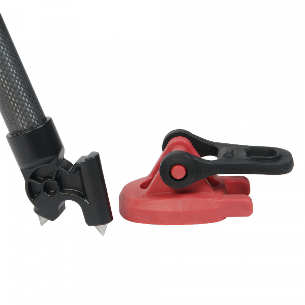 Устойчивость штатива на льду или твердом грунте обеспечивают шипы на концах ног. Благодаря надевающимся на них резиновым башмакам штатив прочно стоит на гладком полу, не оставляя царапин. Жесткость конструкции повышают поперечные растяжки – одна стационарная, вторая съемная нижняя с раздвижными секциями.