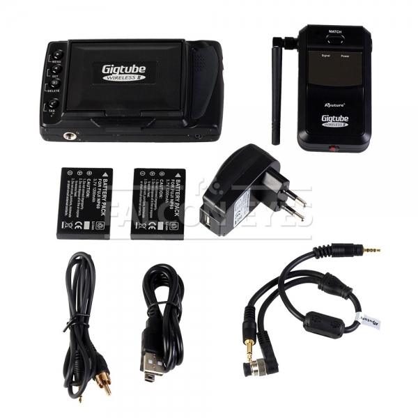 Видоискатель Aputure Gigtube Wireless II GWII-C3 позволяет дистанционно передавать изображение с матрицы фотоаппарата на удаленный до 100 м беспроводной монитор и управлять затвором камеры. Данная версия видоискателя позволяет также управлять режимом видеосъемки (старт/стоп)*. Передатчик из комплекта GWII-C3 предназначен для Canon 1D Mark IV, 7D, 60D, 600D, 550D, 500D, 1100D (возможно использование с другими камерами, соответствующий кабель приобретается отдельно). Устанавливается в горячий башмак камеры, соединяется с камерой с помощью проводов из комплекта. Передача графических данных осуществляется через помехозащищенный радиоканал с частотой 2,4 ГГц. Данная версия передатчика оборудована встроенной видеокамерой для работы с DSLR камерами, не имеющими функции Live View.