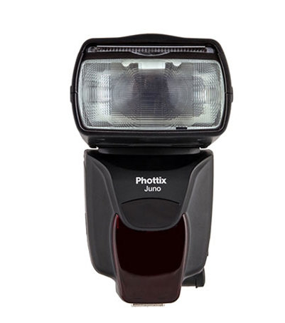 Вспышка Juno предназначена для работы с зеркальными камерами и позволяет фотографам использовать Juno не только в качестве накамерной вспышки, но также и для управления другими удалёнными вспышками при помощи радиосигнала. В вспышке Juno встроены приемник и передатчик Ares II, что позволяет обмениваться сигналами с совместимыми вспышками и, таким образом, может быть использована в качестве триггера для других приёмников Phottix. Передатчик Ares II может устанавливаться на камеру и управлять вспышками Juno. Поддерживаются режимы ручной настройки экспозиции от полной мощности до её 1/128. Световой импульс имеет 8 стопов мощности и может быть скорректирована с шагом 1/3 ступени с ведущим числом 58. Угол освещения вспышки 20-200mm. (в единицах фокусного расстояниях объектива). Вспышка имеет ЖК-экран, который позволяет контролировать настройки.